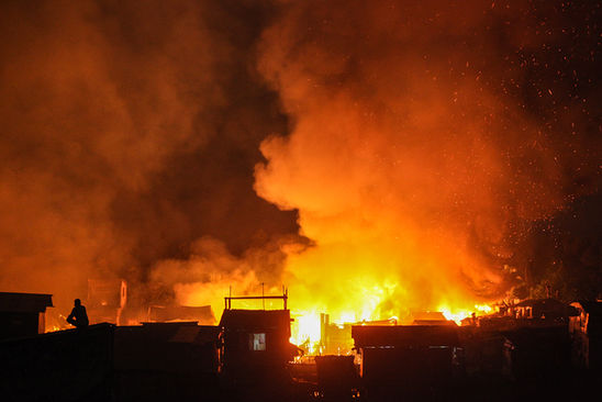 When one house burns, the others follow. There is no space between them, no firewall, no buffer. Only a maze of electric wires tangled overhead like dry vines waiting for a spark. A single overturned candle, a faulty connection, a cooking stove left unattended—these are enough. In minutes, a lifetime of belongings turns to smoke.